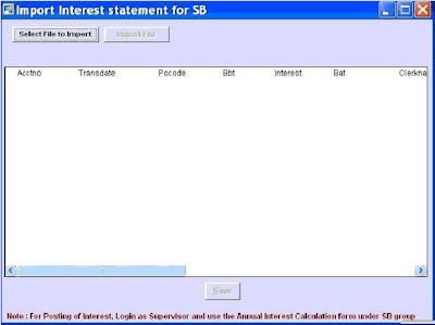 After select the SB Interest Posting Radio button -> OK the following screen will be appear. >> Click on Select file to import menu
