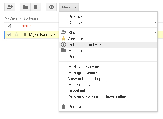 Check Mysoftware.zip, select Details and activity from More menu.